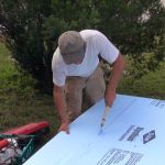 Holding the piece of XPS foam in place, Kelly marks it to lay ou…