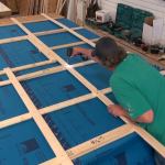 Taping the weather barrier fabric joints with ProClima Tescon Vana tape.