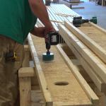 Drilling pressure-relief holes in the wood I-joist webs before a…