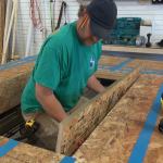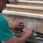 Steve Greenleaf cuts engineered rim board to length for a window…