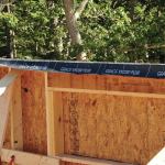 One added benefit of the deep truss walls is shading. I kept the windows in plane with the Zip wall sheathing. In summer, when the sun angle is high and the heating potential is the greatest, the overhangs keep most of the sun off the windows.