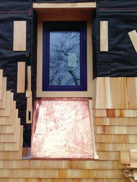 Another reason I chose European windows is that the window sizes aren’t predetermined but are based on the design of a specific project. (Read more about European windows in JLC‘s Jun/14 issue.) I was able to order each unit to the exact size requirements of the cottage, including large combination units (fixed and operable) for the first floor. I ordered the aluminum cladding in a deep-blue finish, a color the company had not used before. They created the color and produced the windows with no added time or cost.