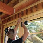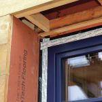 Each unit is almost 4 inches thick. Installation required many strong backs to get the window units into position. To level them and move them side to side within the opening, we used small flat inflatable bladders that slip between the window and the rough opening. Squeezing a bulb inflates the bladder (similar to a blood-pressure cuff), moving the window units gently and safely into exact position. Once positioned, the window is secured to the framing with metal bracket. Because windows are also notorious for air leaks, I sealed them in place with spray foam and tape—vapor-open tape on the exterior and vapor-closed tape on the interior.