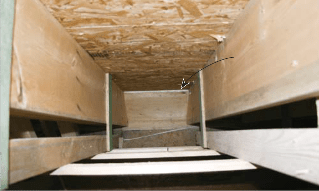 A good cellulose installation is a mix of art and science; installers develop a feel for when they’re achieving the proper density, about 3.5 pounds per cubic foot. This job was complicated by the double walls and gusseted roof. Normally, bays are filled one at a time, but here there was nothing to keep the cellulose from flowing laterally. Fortunately, our installer, Ace Insulation, had already done several double-walled houses and had a handle on the slightly different technique for ensuring complete and proper density.