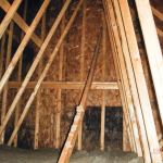 I arrived early in the morning, before the day got too hot (attic work in the summer can be unbearable). As the owner had said, there was only one visibly moldy spot in the attic, where the bath vent had been pointing. I collected tape lifts and contact plate samples from the suspicious black spot, and from unstained wood framing and sheathing a few feet away from the problem area and at several other locations around the attic. I also collected samples of insulation from directly under the mold spot and other areas.