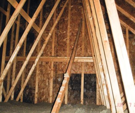 The homeowner called his insurance company, who hired a local environmental firm to send out a certified industrial hygienist to assess the problem. He collected a sample from the moldy wood and identified it as Stachybotrys chartarum, the infamous “toxic black mold.” To correct the problem, the hygienist recommended that all the wood framing and decking in the attic be abrasive-blasted with dry ice and all the loose-fill fiberglass insulation be removed and replaced. The homeowner received an estimate of more than $20,000 to have the work done. Frightened, he called his builder, who contacted our state builders association, who referred the homeowner to me. The owner called and described the problem, noting that all he could see was a small patch of mold and wondering if the recommended repairs might be a bit over the top. He asked me to come down and take a look.