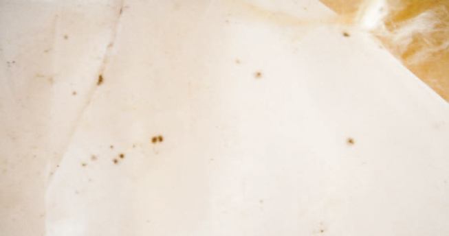 This time there was no avoiding an August afternoon visit. I climbed up into the attic, which I measured at 140°F. I teetered across the trusses, pouring sweat and getting groggy. When I reached the stained gable end, I observed a couple of neat, 2-by-4-foot rectangular patches of discolored OSB sheathing. Again I collected tape lifts and contact plates from the stains and from adjoining sheathing and framing, and took lots of digital photos.