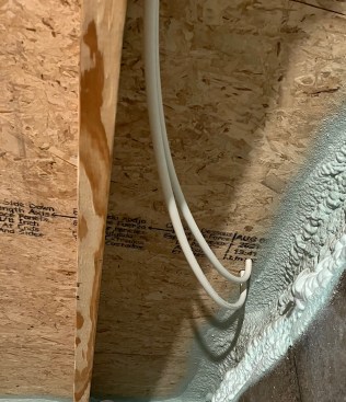 We routed the ½-inch PEX-AL-PEX tubing above the floor insulation and, as such, it did not require insulation. We fastened it to the joists using Genova CPVC C-clips.