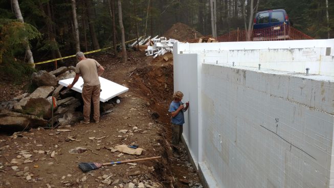 This fall and winter, JLC is following the progress on a unique architect-designed custom home on Peaks Island in the harbor. Earlier, we covered the forming and concrete placement of an ICF basement wall and a set of concrete piers. This week, we update the crew’s progress on the superinsulated foundation (see slideshow).