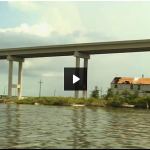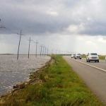 Combining text, photos, and video, the six-page report details the effects of the sinking ground and rising sea on the people and the critical industries located at the mouth of the MIssissippi (which includes a significant segment of the U.S. oil and gas industry). Part of the story discusses the effort to raise roads above the sea: below, photos show a stretch of critical road that sits only inches above the Gulf, and another stretch of the same highway that has been re-engineered to withstand hurricane storm surge even after the predicted rise in sea levels in the coming century. The story also details the advanced GPS technology scientists are using to keep track of the changing land and ocean, giving engineers the data they need to design structures for a 75-year or longer lifespan even as conditions change.