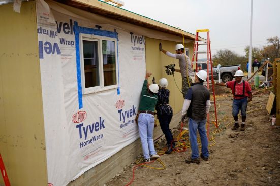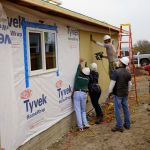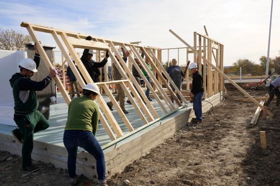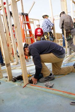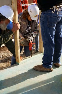 Volunteers like setting up the walls on site, said Whipple (see slideshow). “Generally our volunteers don’t know much about home building, but they work hard. A typical panel for us is about 10 to 12 feet, and if it has headers or whatever in it, they are pretty heavy. So people move those around and they feel physically fulfilled.”