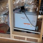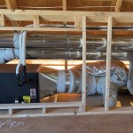 As per ASHRAE 62.2 ventilation standards, the tight envelope of this high-performance home (less than 2.0 ACH50) requires a whole-house mechanical system to help circulate fresh air. We selected an AprilAire V22BEC Energy Recovery Ventilator (ERV), which transfers much of the energy used to heat or cool the indoor air from the exhaust air to the intake stream as it dumps fresh, filtered air into the supply side of the Mitsubishi Electric SVZ-KP24NA air handler. The V22BEC ERV also pairs with AprilAire’s 8120X Ventilation Controller, which monitors outdoor temperatures and will adjust its schedule to avoid bringing in fresh air during the hottest, most humid times of day.