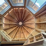 Rooftop renewables. The complicated roof structure with its many pitches, hips, and valleys meant that installing solar panels would be virtually impossible and practically useless, especially considering the county’s setback requirements. Thus, the decision was made to source a Tesla Solar Roof with the added bonus of the material’s low-tech look resembling historical slate shingles. The Tesla solar installers recommended a naturally vented roof, which proved challenging due to the complicated roof design and the fully unvented third-floor attic space. To solve for this, the team opted to install the roof sheathing on 1-by purlins, holding these a couple of inches back from the hip and valley rafters to provide a channel for air to flow past the purlins at these locations.