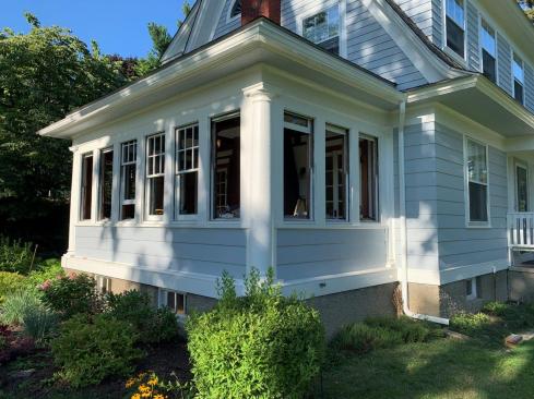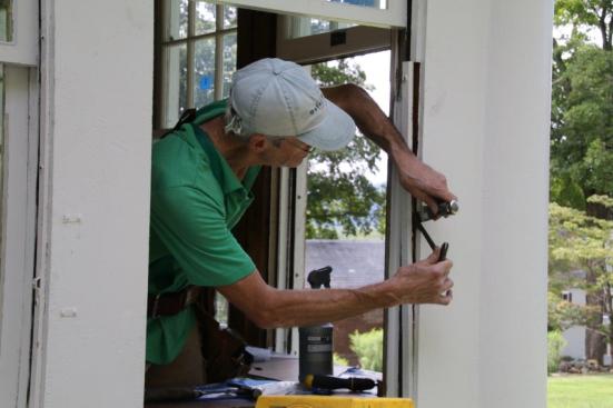 After the author completed his work, the sashes were fully functional in the 12 box-head windows that enclose this porch.