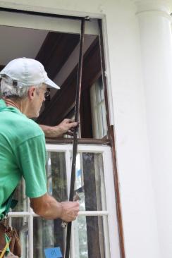 Fortunately, I discovered that Lunken had left a trail of breadcrumbs, in the form of brass screws—some of them decorative—to identify particular stops and other components that were designed for disassembly. I ultimately had to remove a total of nine pieces before I was able to get my hands on the first of many pairs of unstrung cast-iron weights. It was also my good fortune to have arms long enough for my fingers to touch the pulleys at the top of the pocket. With practice, I was able to coax a fishing sinker, with a new cord attached, over the pulley and down to the sash weight. After 48 successful restringings, plus the standard tuneup work, all 24 of Lunken’s sashes go up, down, or out of sight with the greatest of ease.