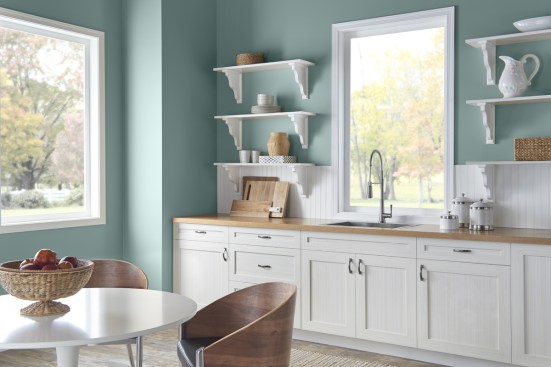 “According to a common design rule, every space should incorporate black in some way,” said Dee Schlotter, PPG senior color marketing manager, in a press release. “Black Magic can easily make a statement in any home on a front door, window trim, kitchen cabinets, exposed shelving, or even sliding barn doors. It works especially beautifully in a dining room with a bold light fixture.”