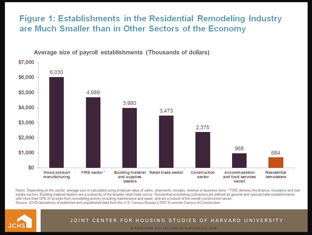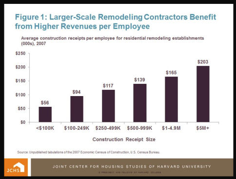 It’s too bad more contractors aren’t franchising, because it’s holding the industry back from faster growth, said Abbe Will, a research analyst with Harvard’s Joint Center for Housing Studies. Large scale remodeling companies enjoy higher revenues per employee and economies of scale. But most remain smaller than comparable sectors, such as construction and wood product manufacturing.