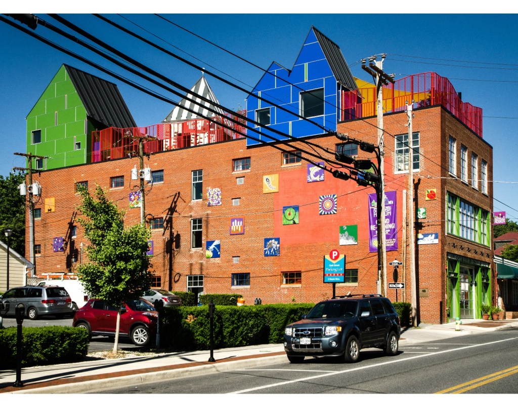 For one of the most dramatic transformations, however, visitors need to look up: The project team installed a multi-dimensional roof terrace onto the previously unoccupied space, complete with assorted colorful pavilions and sculptural sun shades. On the roof deck, guests can explore additional exhibits, participate in educational programs, host social events, or simply enjoy the view of historic downtown Winchester and the surrounding Blue Ridge Mountains.