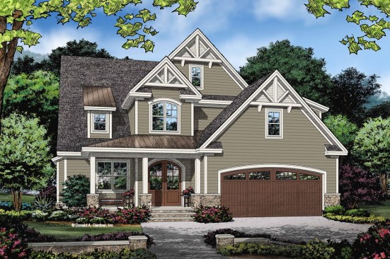 For families with live-in extended relatives (like an in-law), the extra privacy of a second master suite really comes in handy. This simple design places both suites on the main floor, where they’re easy to access, and a third bedroom upstairs. Also convenient: the drop zone with storage on the way in from the garage. See more images, information, and the floor plans.