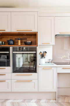 Wood cabinets amid painted cabinets. According to the 2019 Houzz Kitchen Trends Study, white is the most popular kitchen cabinet color, with more than 40% of renovating homeowners electing to install white cabinets. However, Houzz is beginning to see designers add wood drawers, shelves, and pullouts to add visual interest and warmth and break up the expanse of white.