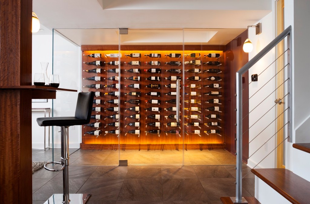 Case Design/Remodeling creates a sophisticated custom wine cellar for an oenophile client.