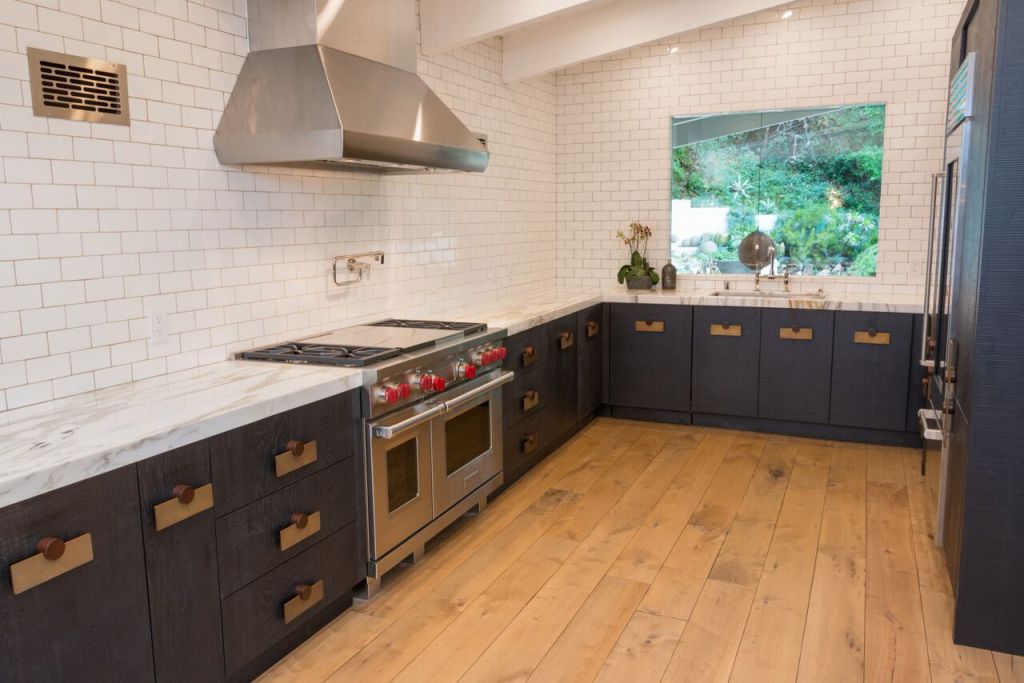 This carefully re-crafted kitchen originally was meant to be a part of an addition in a Los Angeles home’s remodeling plans. But when his client decided not to build the addition, Justin Krzyston, owner of Los Angeles-based Stonehurst Construction and Design, was tasked with the challenge of finding another space in the Hollywood Hills home that could accommodate the kitchen. Determined not to waste pre-ordered Wood-Mode custom cabinets, he worked with the cabinets’ dimensions and was able to use all but two in the new design. In an effort to maximize the space’s style and texture, subway tile grouted in light smoke was used to complement the white and grey marble countertops, while solid walnut hardwood flooring adds warmth.