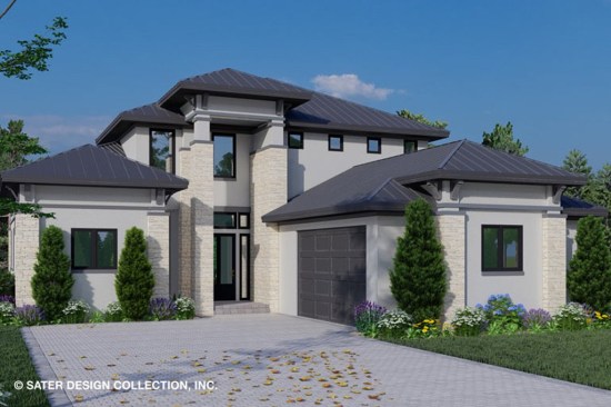 These bold modern house plans from designer Dan Sater showcase impressive outdoor living, fresh open layouts, and quite a few upscale details.