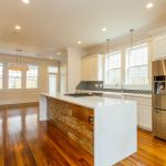 The finished product is a fully refurbished 3,400 square foot, 5 bedroom, 3.5 bathroom house, complete with one-of-a-kind features, such as hand-built cedar cabinets and custom doors. Perhaps the most notable aspect of the project, however, is the reuse of original materials, which gives the home its rustic feel. From exposed lattice work and beams to the salvaged hardwood floors and staircase, the designs reflects the historic aesthetic.