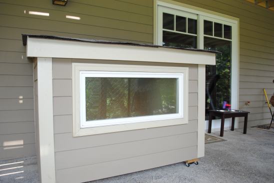 the homeowner’s three rescue dogs. The insulated kennel extends into the garage
