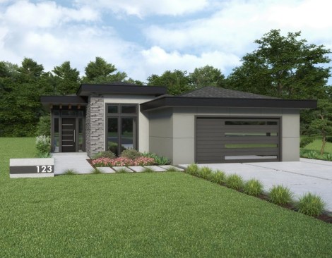These starter house plans feature on-trend curb appeal, modern open layouts, and flexible spaces.