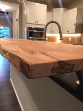 The final piece of reclaimed wood is a slab of maple used as a countertop in the kitchen. It is not from the original house, but was created from a maple tree that had been cut down for construction. Khreshi got this maple slab from a green building supplier in Maryland that reclaimed the tree and cut it into slabs for use in future projects.