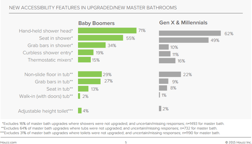 boomers are grab bars and curbless shower entry. They are three times more