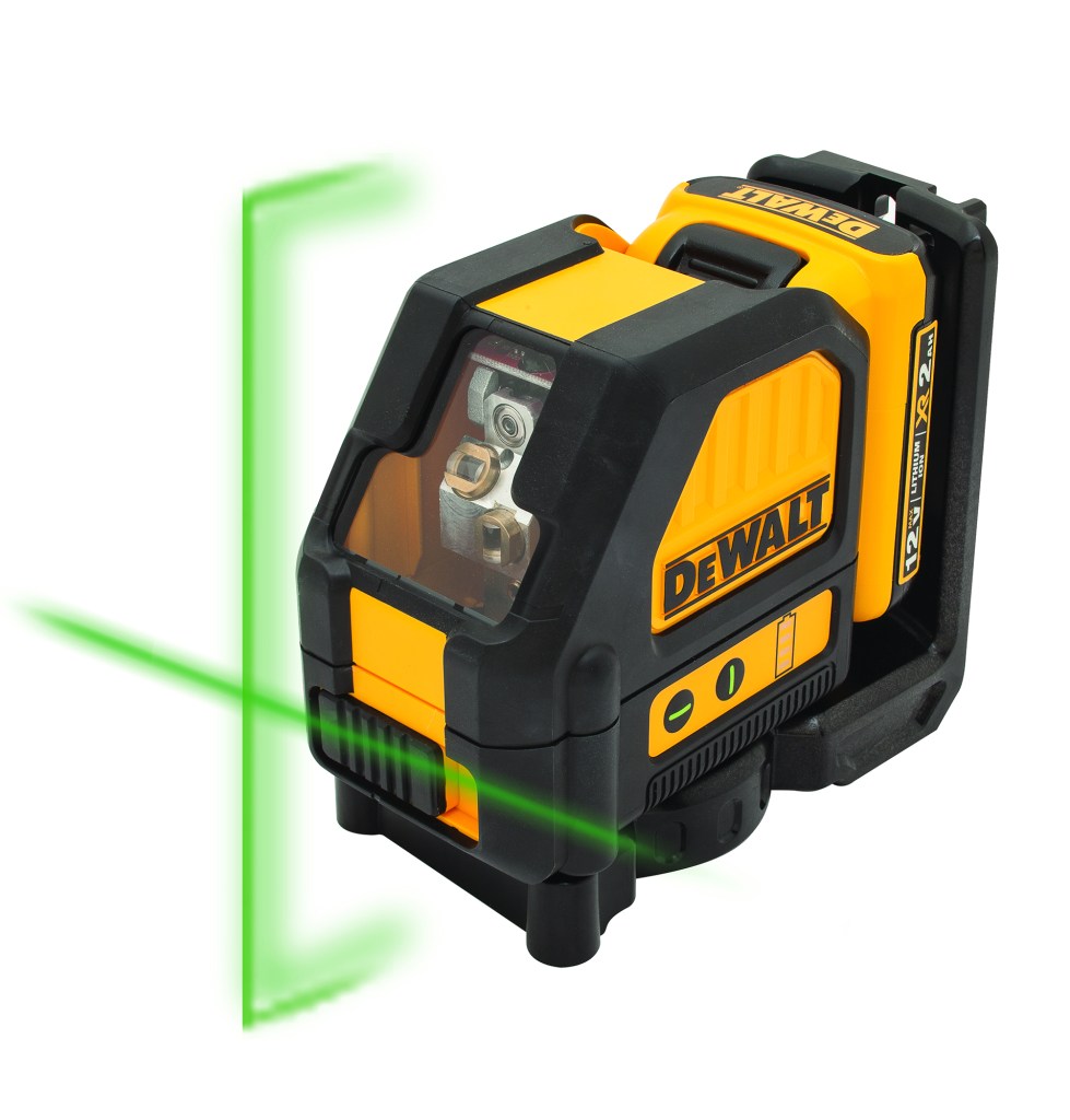 Green-beam construction lasers are up to four times easier to see than red ones, but until recently, the intricate diodes that projected them were too pricey and power-hungry to go mainstream. Thanks to a recent technical breakthrough, though, true green semiconductor diodes are now available that cost less and are more efficient than their predecessors. Thatās why a bunch of new green-beam point, line, and rotary lasers have recently hit the market. I tested the DeWalt DW088LG cross-line green laser, a member of the companyās 12V MAX cordless family of line lasers (I also tested the red-beam version, the DW088LR).