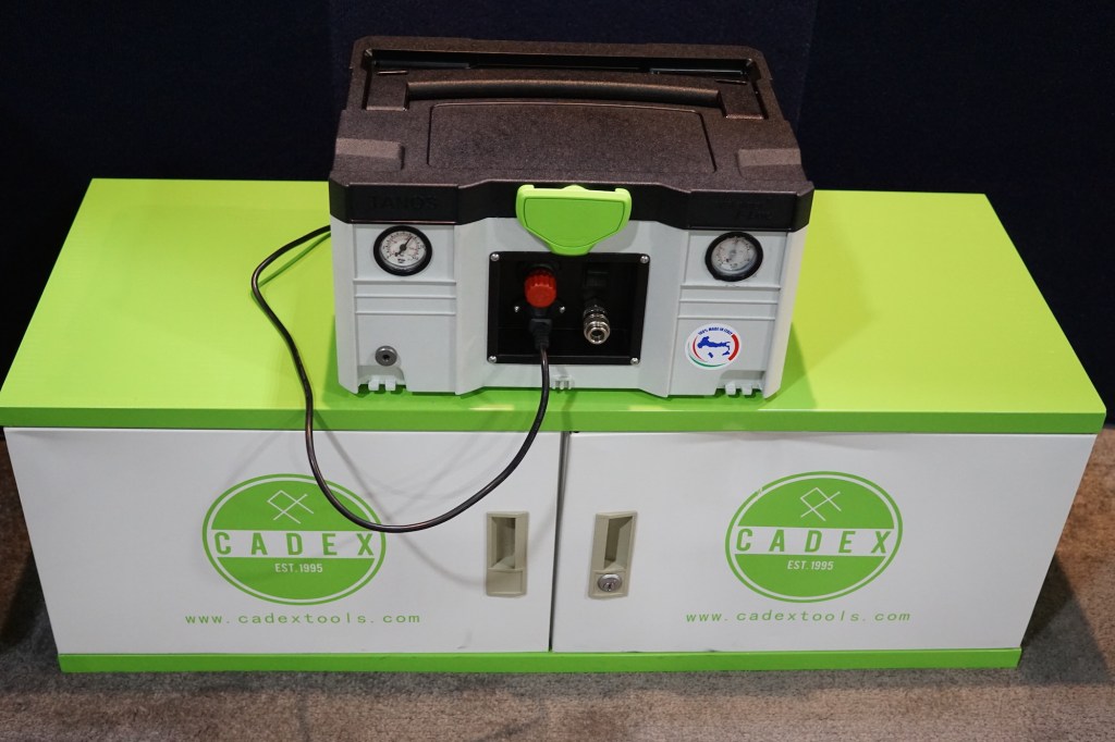 Hold on to your air hoses! Cadex has a new Italian-made compressor that is housed inside a Systainer. It will be available February 2017. As I am a carpenter who specializes in commercial/institutional millwork, this is a must-have tool for me because air-powered tools will always have a place in my work. I work with rolling carts and rolling systainer systems on the jobsite every day. I quite often use vacuum clamps, air nozzles, all size pin and stapler guns. At an extremely low noise of only 68db, I will easily be able to take this compressor into any working medical center, complete my punch list, and hear no complaints from customers about noise.
