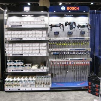 I was at the STAFDA show in Orlando and at the Simpson booth there was a mockup of a store display (see photos below). It was split down the middle, with Simpson product (anchors, adhesive, and installation tools) on the left and Bosch product (rotary hammers and bits) on the right. The alliance suddenly made sense; now everything the contractor needs to install anchors can be found at a single location.
