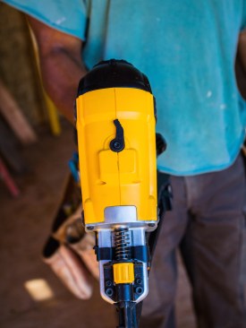 It was a little less reliable than the pneumatic guns we’ve used. You have to learn the rhythm of this gun, and at first it is frustrating. You have to make sure the nosepiece is all the way in to shoot the nail. This takes a little bit of force. I figured it out right away, but it took some practice. At first, though, it was frustrating to pull the trigger and have nothing happen.