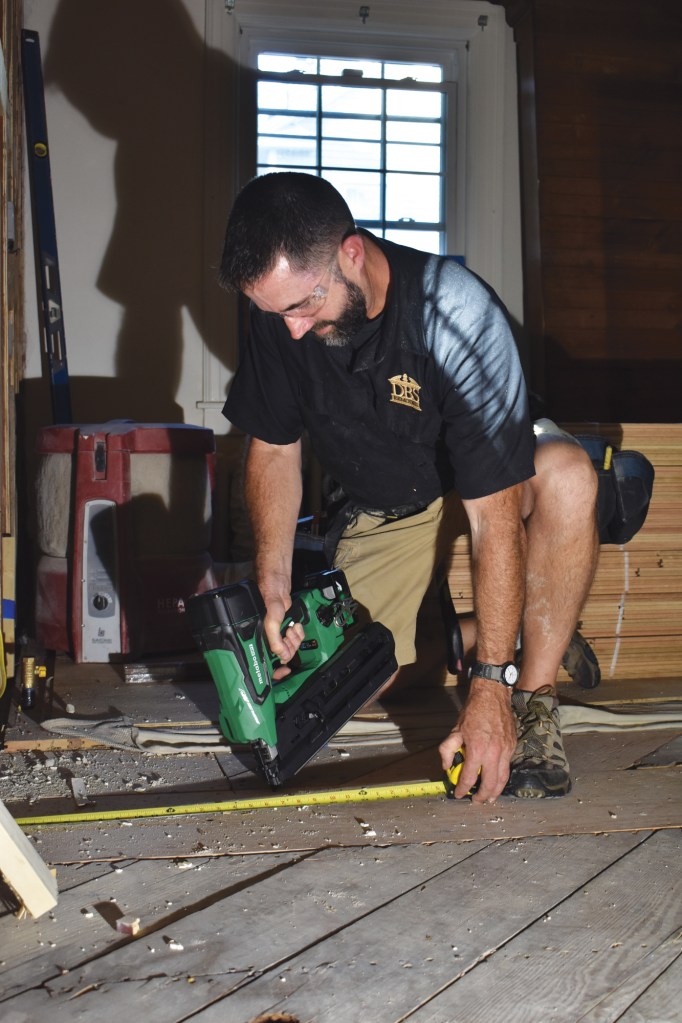 It’s a pleasure to work in a smaller place without dragging a hose around or waiting for a compressor to catch up. We didn’t have to wait for the motor to ramp up either and found that the ability to drive three nails per second was plenty fast enough for us.