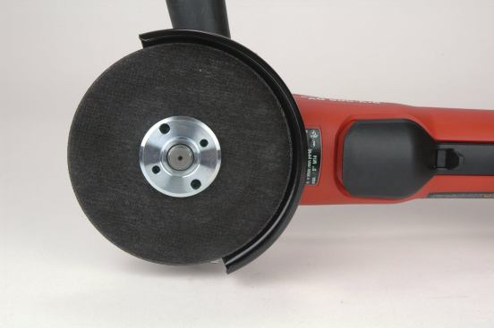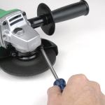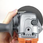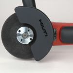Ridgid’s guard can be rotated to the desired position by simply using your thumb to push a spring-loaded lever that unlocks the guard. Tool-free guard adjustments also can be found on the DeWalt, Hilti, Metabo, and Milwaukee grinders.