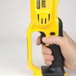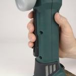 DeWalt’s handle provides knuckle protection, but because you have to hold the trigger on, you can’t move your rear hand to choke up for a different grip. Having your hand stuck at the back of the grinder (plus its extra length) costs the tool some maneuverability.