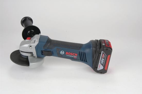 Battery: 18 volts, 4.0 Ah Battery gauge: 3 bars, on battery Weight: 5.1 pounds RPM: 10,000 Switch type: lock-on slider switch Guard: 4 1/2-inch grinder guard, 4 1/2-inch cut-off wheel guard Guard adjustment: requires hex wrench (stored onboard tool) Web price: kit $399; bare tool $125 Includes: tool, 2 batteries, charger, cut-off guard, wheel wrench, fabric duffel bag Country of origin: tool: Germany; battery: Malaysia