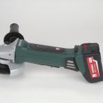 Battery: 21.6 volts, 3.3 Ah Battery gauge: 4 bars, on battery Weight: 6.1 pounds RPM: 9,500 Switch type: paddle switch Guard: 5-inch grinder guard, plastic cover for cut-off use Guard adjustment: tool free Other features: tool-free wheel nut; brushless motor, metric M14 shaft Web price: kit $559; bare tool $329 (manufacturer’s list price) Includes: tool, 2 batteries, charger, cut-off guard cover, wrench, 25 cut-off wheels, fabric duffel bag Country of origin: tool: China; battery: China