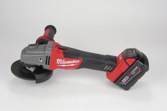 Battery: 18 volts, 4.0 Ah Battery gauge: 3 bars, on battery Weight: 6.3 pounds RPM: 7,000 Switch type: trigger Guard: 5-inch grinder guard, 5-inch cutoff wheel guard Guard adjustment: tool free Web price: kit $299; bare tool $119 Includes: tool, 2 batteries, charger, cut-off guard, wrench, fabric duffel bag Country of origin: tool: Mexico; battery: Japan
