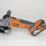 Comments: Light-duty tool with only modest power and runtime; outclassed by other tools in the test but its compact form was appreciated for lighter finishing work. Pros: Light weight, good balance, and lots of rubber grip surfaces made this downsized tool a standout for one-handed finishing work. Cons: Limited to light work; screwdriver is required to adjust the guard which slows down the process; unlike the others with multiple LEDs on the battery, has a more rudimentary fuel gauge with two LEDs on the tool itself; lacks cut-off guard.