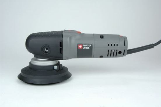 A large, geared-down motor is typical of right-angle sanders such as on this Porter-Cable 97455. Lower speeds and high torque typically make a model like this better suited for faster and rougher sanding or for buffing and polishing uses. For a detailed review of this model see Porter-Cable 97455.