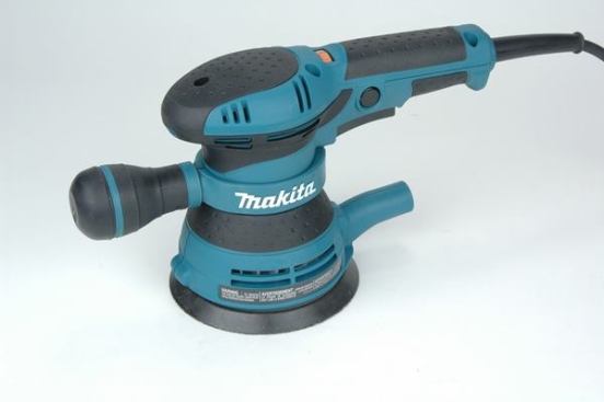 As the smallest and lightest tool in the group, the Makita BO5041 isn’t quite a full-size dual-handle sander like the Bosch models. Rather, it’s more of a hybrid that shares the body size and shape of a palm-grip sander, but with a rear handle added on. With the front handle unscrewed, this versatile tool offers all the maneuverable grips of a one-handed sander. And with the front handle on, it offers all the stability and control of dual-handle models. For a detailed review of this model see Makita BO5041.