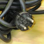 Every now and then I was reminded that the tools in the Festool … Every now and then I was reminded that the tools in the Festool museum would be hard to use here—as when I looked at the power plugs. Here we use 110 volt 60 cycle power; in most of Europe they use 220 volt 50 cycle power and the type of two-pin “Schuko” plug shown here. This particular plug is not grounded, but most are. The ground connection is made through a pin that extends from a recessed receptacle (all the ones I saw were recessed) into the plug or via spring-loaded contacts in the sides of the plug and receptacle.