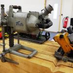 The far end of the room contains stationary machines from Festo … The far end of the room contains stationary machines from Festo and its precursors Fezer and Stoll.