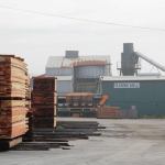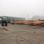 The main mill building is where logs are turned into boards. There is also a planing mill, offices, and buildings that house the machinery for debarking logs and grinding bark and waste material into mulch. This photo was taken on a foggy March morning; the fog rolled in off the Pacific Ocean which is maybe 200 yards away.
