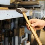 I noticed this strange looking hammer at one of the stations in the sharpening room. I don’t know if it was made this way or someone ground it to this shape. Evidently, the saw sharpener uses this hammer while re-tensioning blades—which flattens and stretches the metal to make them run true.