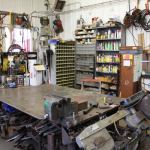 Maintenance and repairs are done in-house. This is part of a much larger maintenance shop filled with mechanic’s tools, parts and supplies, and equipment for cutting and welding.
